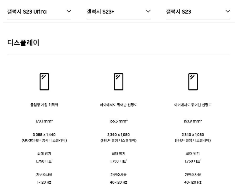갤럭시 s23 시리즈 스펙비교